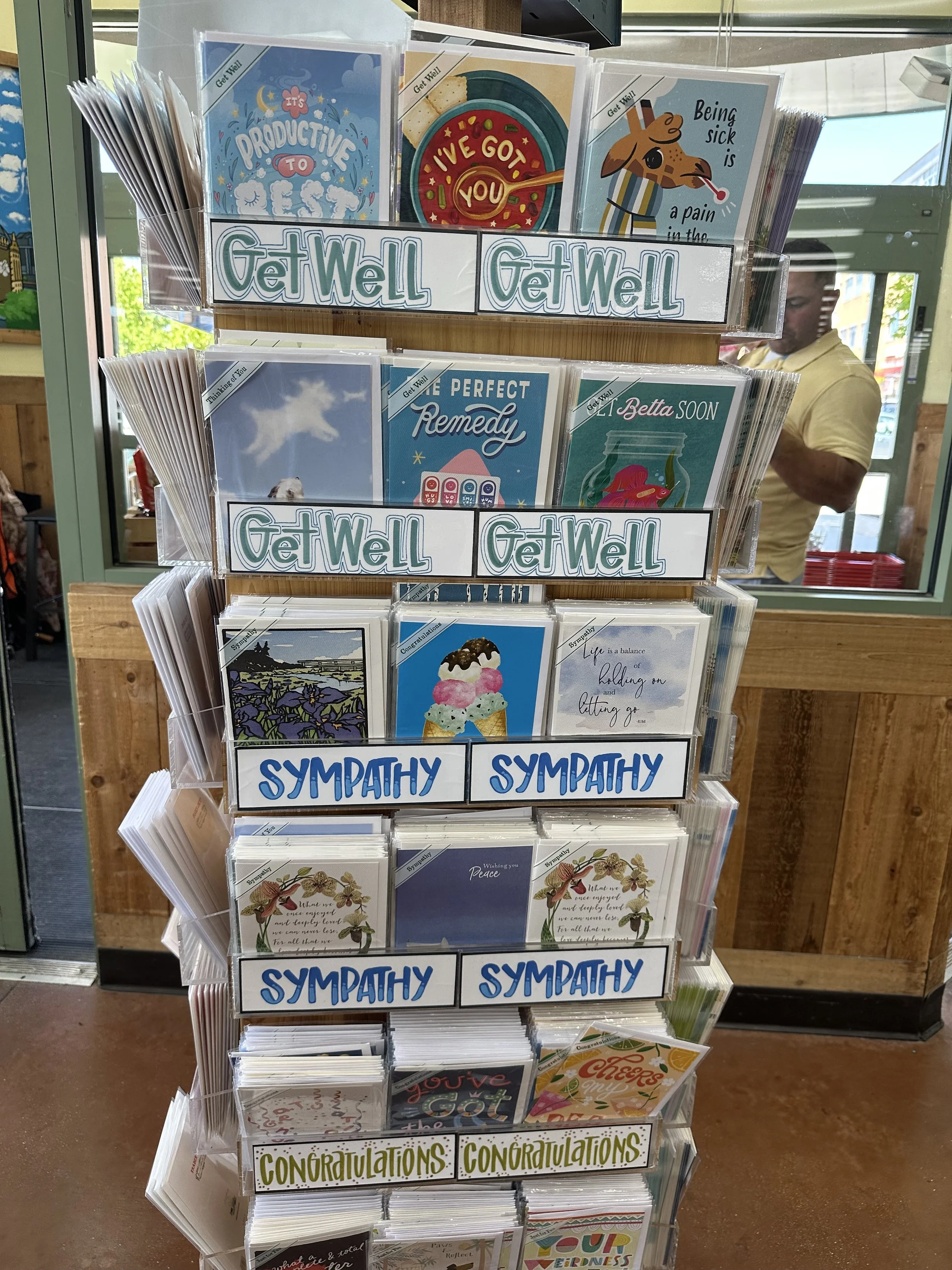 The wishes and messages on the Care Cards were quite moving. They powerfully illustrated the need and promise for a whole new section on card racks - one between “Get Well” and “Sympathy.”